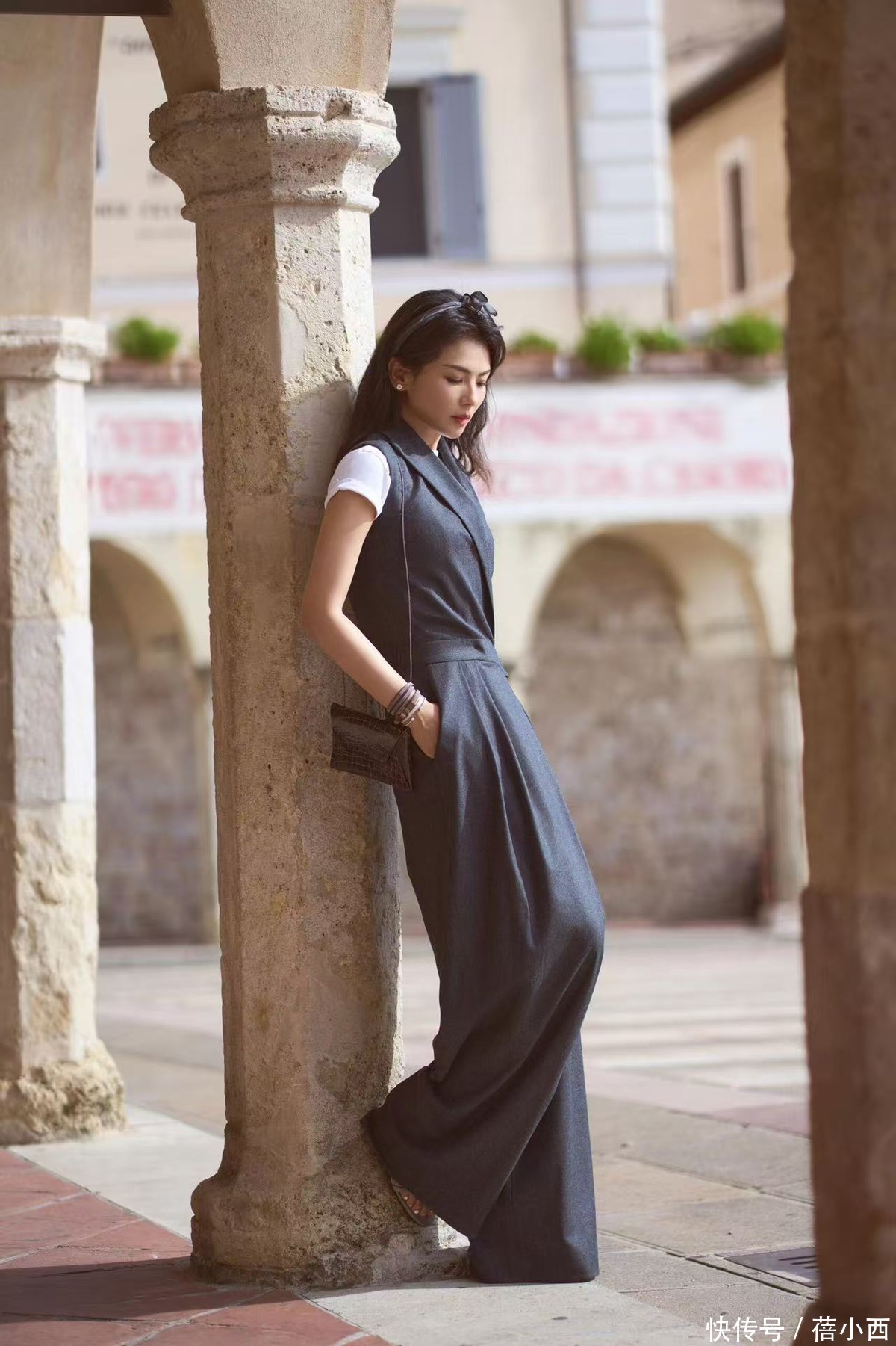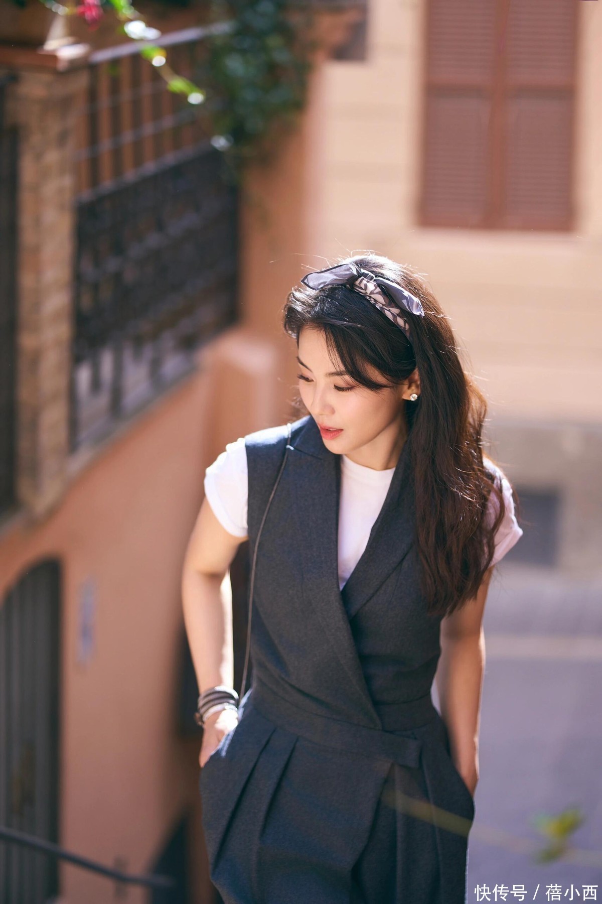 如果是上班通勤,我们可以参考刘涛的这一身搭配,通过灰色西装连体裤打造出了满满的轻熟风,优雅又有质感,日常通勤或者出门约会都超合适!内搭一件简约的白色短袖T恤,基础款不挑人,还能增加清爽感,叠穿在西装马甲里,让搭配的层次感瞬间拉满,不会显得单调。